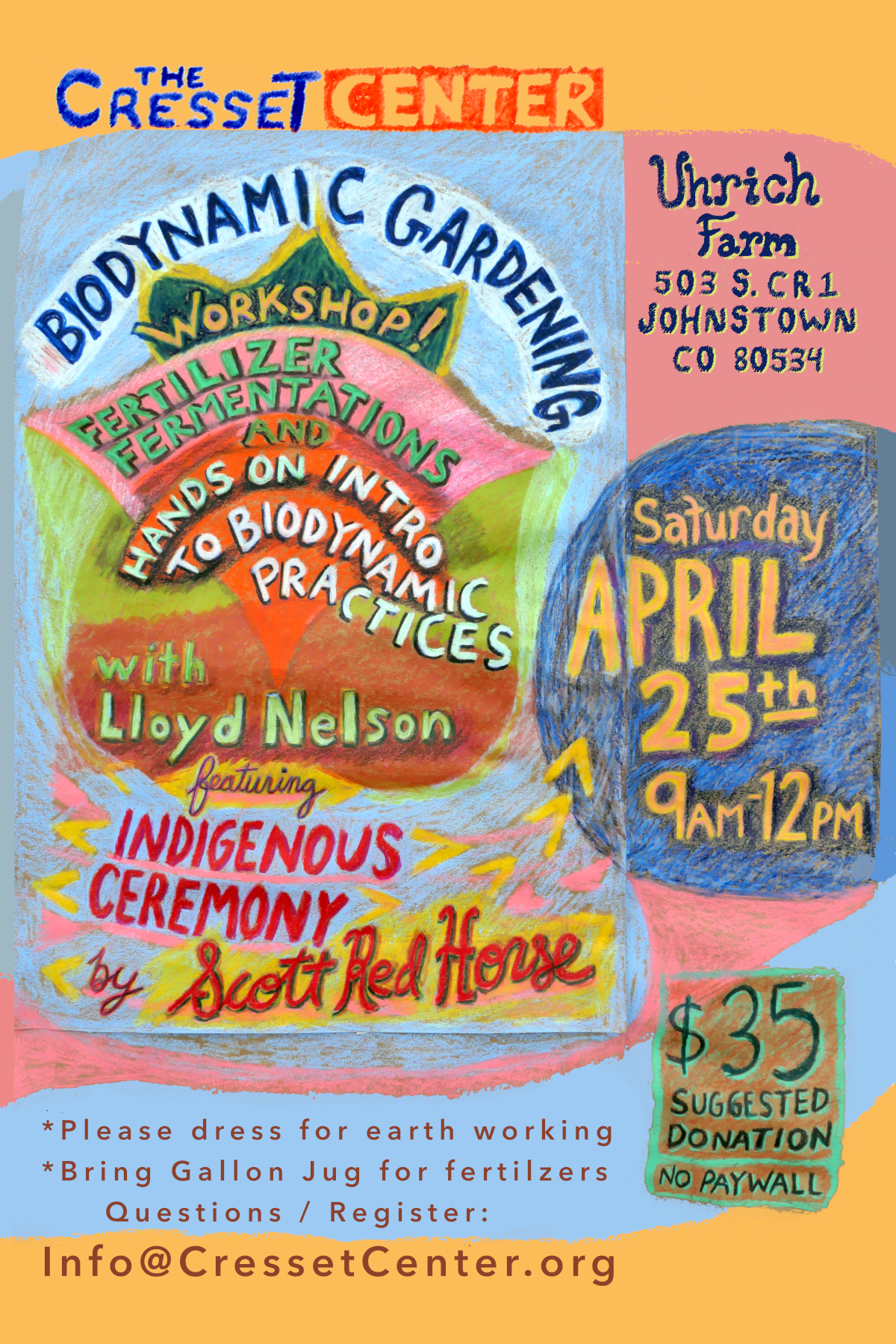 Join us in honoring Earth Day through participating! Email info@cressetcenter.org to register or for inquiries *please bring water bottle and sun protection led by Lloyd Nelson and Scott Redhorse Community Potluck to follow 12:30pm to 2:30pm (optional) *Please bring something to share and your own tableware (plates, utensils, etc).  Click Here to learn more about Biodynamic…